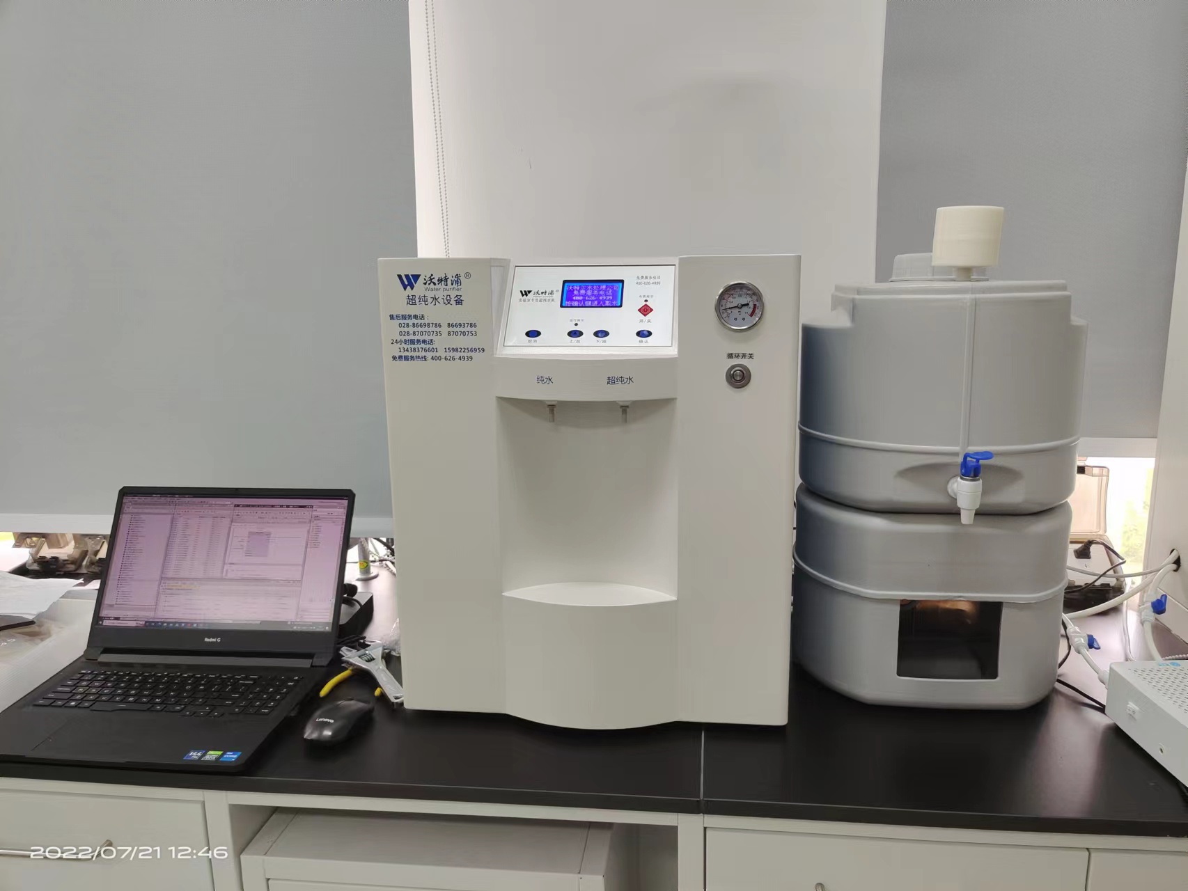 采用雙波長紫外消解系統,除熱源超濾膜組件,采用進口離子交換樹脂過濾,使超純水能滿足各種實驗要求。